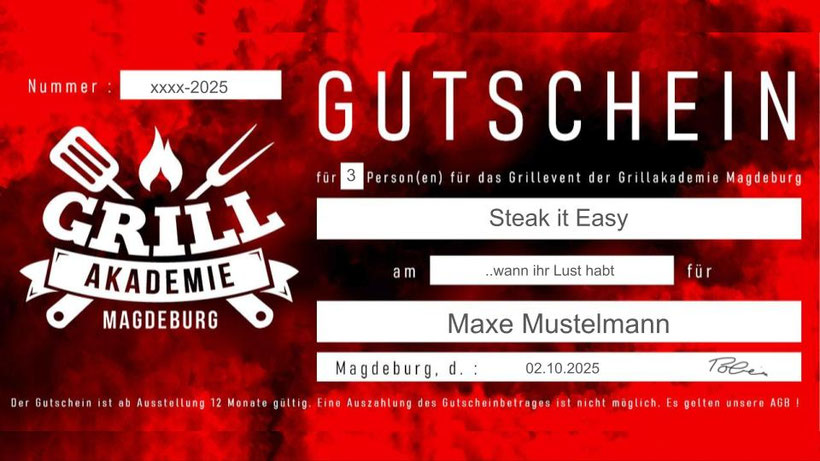 Gutscheine für einen unserer Grillkurse in der Grillakademie Magdeburg kannst Du jederzeit bei uns bestellen.